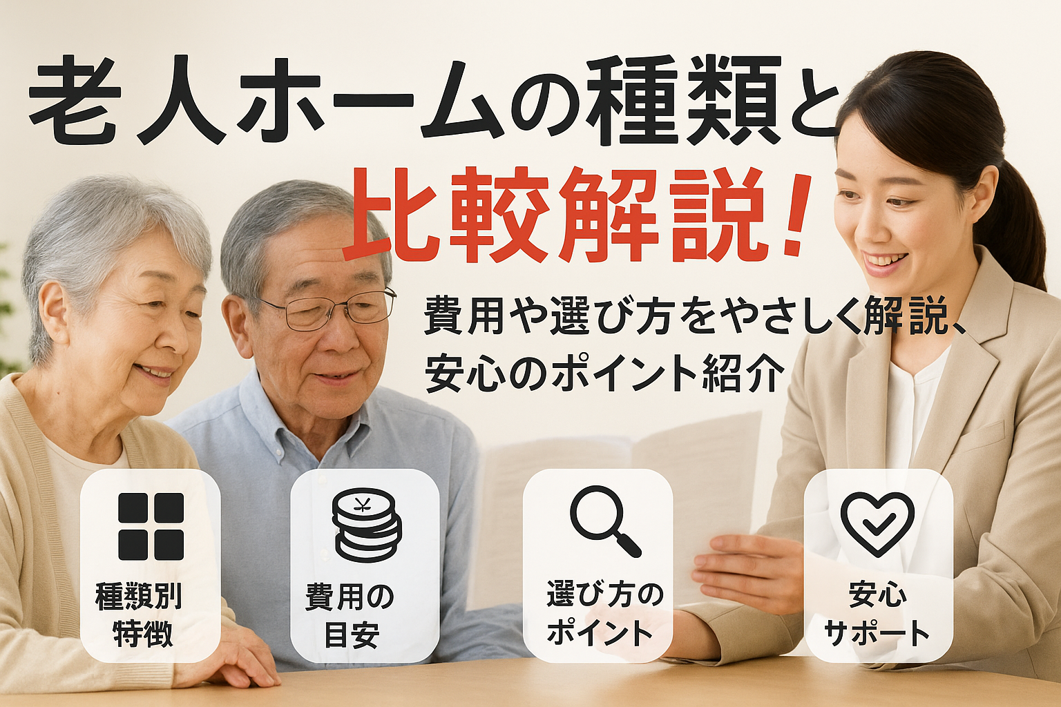 特別養護老人ホームや老健と老人ホームの違いを一目で理解できる!